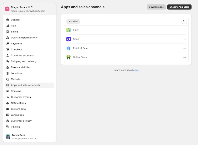 Shop nameis the first part of your ".myshopify.com" Shopify URL. For example, if your Shopify URL ishttps://your-store-name.myshopify.com, then yourShop nameisyour-store-name.
